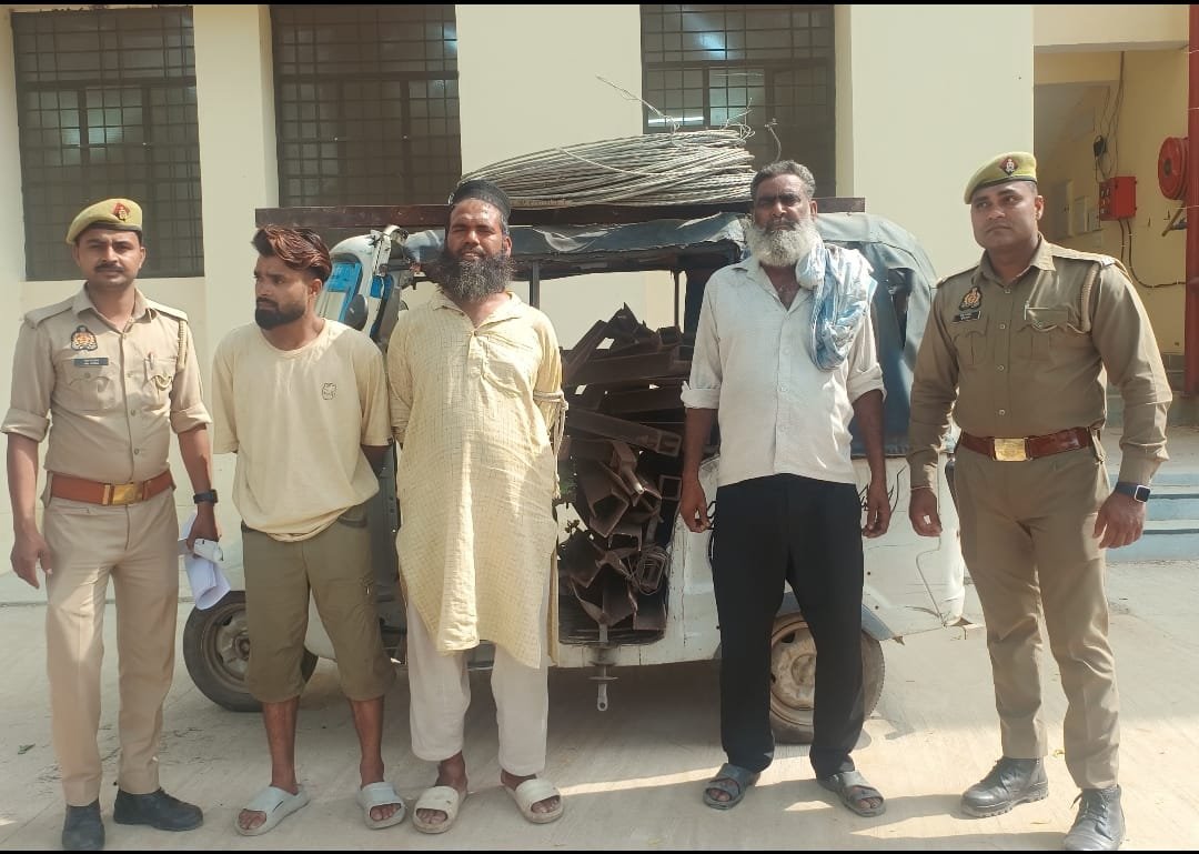 भोजीपुरा(बरेली) – बिजली विभाग के स्टोर रूम से बिजली पुराने तार व लोहा चोरी करने वाले कबाड़ी समेत तीन लोगों को गिरफ्तार किया है। पकड़े गए आरोपियों के कब्जे से एल्युमोनियम का पचास किलो तार व लोहा एक टैम्पो बरामद किया है। प्रभारी निरीक्षक भोजीपुरा प्रवीन सोलंकी ने बताया कि आरोपियों ने यूनिवर्सल एमपीई प्रोजेक्ट्स एण्ड इंजीनियरिंग सर्विस लिमिटेड कंपनी के स्टोर रूम से बिजली का एल्युमोनियम का पचास किलो पुराना तार चौदह लोहे के चैनल व अन्य लोहे का सामान चुरा कर ले गए थे।इस मामले में कंपनी के इंजीनियर अभयजीत सिंह ने थाना देवरनिया में मुकदमा पंजीकृत कराया था। भोजीपुरा पुलिस ने आज मंगलवार को मुखबिर की सूचना के आधार पर अभयपुर मस्जिद के पास से मोहम्मद फैजान सलमानी, निवासी वार्ड नम्बर छह कस्बा व थाना देवरनिया बरेली, मुबारिक अली निवासी अभयपुर थाना भोजीपुरा, कबाड़ी तस्लीम खां निवासी अभयपुर थाना भोजीपुरा बरेली को गिरफ्तार किया। इनके कब्जे से पचास किलो बिजली का तार तीन कुंतल लोहा व चोरी में प्रयुक्त टैम्पो बरामद हुआ। पुलिस ने आज मंगलवार को उपरोक्त आरोपियों को कोर्ट में पेश किया जहां जेल भेज दिया गया। खुलासा करने वाली टीम में प्रभारी निरीक्षक भोजीपुरा प्रवीन सोलंकी एस आई मनोहर सिंह, रनवीर आदि शामिल रहे।