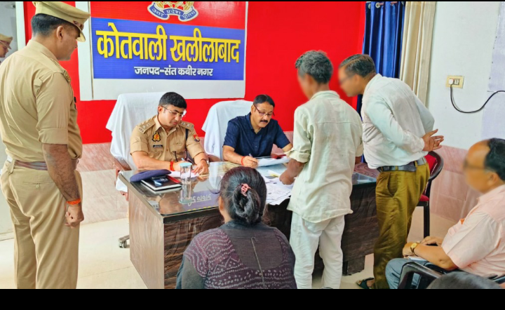 संत कबीर नगर 24 मई 2025 जिलाधिकारी आलोक कुमार व पुलिस अधीक्षक संदीप कुमार मीना द्वारा संयुक्तरुप से थाना कोतवाली खलीलाबाद पर आयोजित थाना समाधान दिवस पर फरियादियों की समस्याओं को सुना गया।