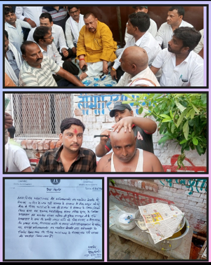 निबंधन मित्रो की नियुक्ति के विरोध में अधिवक्ता ने कराया मुंडन