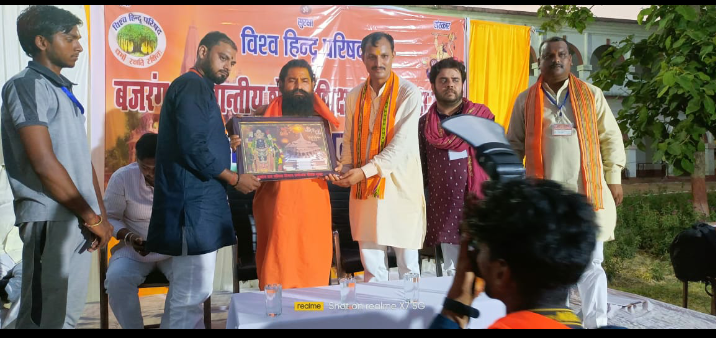 *बलिया*-जिले के नगरा नरही नरहेजी महाविद्यालय में विश्व हिंदू परिषद की युवा शाखा बजरंग दल का साप्ताहिक शौर्य प्रशिक्षण वर्ग संपन्न हुआ। गोरक्ष प्रांत के -21-जिलों से 200 से अधिक बजरंगी सम्मिलित हुए प्रशिक्षण वर्ग-25-मई से शुरू हुआ था जिसमें बलिया आजमगढ़ गोरखपुर महाराजगंज बस्ती कुशीनगर देवरिया सिद्धार्थनगर विभाग से कार्यकर्ताओं ने भाग लिया प्रशिक्षण में निशानेबाजी रस्सी रोहड़,दंड प्रहार,ब्रिज चढ़ाई,प्रशिक्षण आपदा प्रबंधन जैसी विधाओं का अभ्यास कराया गया मुख्य अतिथि क्षेत्रीय संयोजक पूर्णेन्दु जी भाई साहब एवं विशिष्ट अतिथि पूज्य संत मौनी बाबा भरत दास जी ने बजरंगबली भारत माता और प्रभु श्री राम के चित्र पर पुष्प अर्पित कर कार्यक्रम का शुभारंभ किया उन्होंने कहा कि भारत को विश्व गुरु बनाने के लिए सामूहिक प्रयास आवश्यक है कहां की भारत में हिंदुओं को सुरक्षित रखने के लिए युवाओं को सेवा शक्ति संस्कार से युक्त होना पड़ेगा बजरंग दल के छेत्री संयोजक ने संगठन के उद्देश्यों पर प्रकाश डालकर कहा कि बजरंग दल का उद्देश्य भारत को परम वैभव तक पहुंचना है देश में कुछ असुरी शक्तियां पैदा हो गई है जिन्हें समाप्त करने के लिए बजरंग दल का गठन हुआ है कार्यक्रम का अध्यक्षता डॉक्टर विजय नारायण सिंह ने किया जिला अध्यक्ष राजू सिंह चंदेल ने अतिथियों का सम्मान किया कार्यक्रम का संचालन आचार्य मनीष ने किया कार्यक्रम से पहले विभाग संयोजक दीपक गुप्ता ने अतिथियों का परिचय कराया मंच पर उपस्थित गोरक्ष प्रांत सह मंत्री श्री मंगल देव चौबे प्रांत संयोजक दुर्गेश प्रताप राव प्रांत सह संगठन मंत्री दीपेश जी एवं क्षेत्र के वरिष्ठ भाजपा नेता छोटू राम सूर्य प्रकाश सिंह आशीष मौर्य राजू यादव प्रदीप मिश्रा विपिन कुमार गुप्ता प्रतीक राय सौरभ किशोर सहित उपस्थित रहे कार्यक्रम के दौरान राष्ट्रीय एकता के नारे से वातावरण गुंजायमान हो उठा