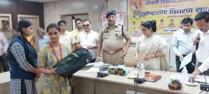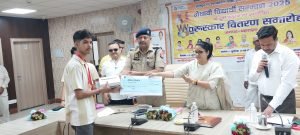 विकास भवन सभागार में आयोजित समारोह में जिलाधिकारी मोनिका रानी ने पुलिस अधीक्षक राम नयन सिंह, सदर विधायक श्रीमती अनुपमा जायसवाल के प्रतिनिधि अशोक जायसवाल, मुख्य विकास अधिकारी मुकेश चन्द्र के साथ हाईस्कूल एवं इण्टरमीडिएट परीक्षा में उत्कृष्ट स्थान प्राप्त करने वाले हाईस्कूल के 10 तथा इण्टरमीडिएट के 12 मेधावी छात्र-छात्राओं को प्रशस्ति-पत्र, मेडल, टैबलेट तथा रू. 21-21 हज़ार की धनराशि के डमी चेक प्रदान किया। उल्लेखनीय है कि कक्षा 12 हेतु राज्य स्तर पर चयनित सेंटपीटर इ.का. नानपारा के मेधावी छात्र नैतिक श्रीवास्तव को राज्य स्तर पर प्रशस्ति-पत्र, मेडल, टैबलेट तथा रू. 01 लाख की धनराशि का डमी चेक प्रदान कर सम्मानित किया गया।