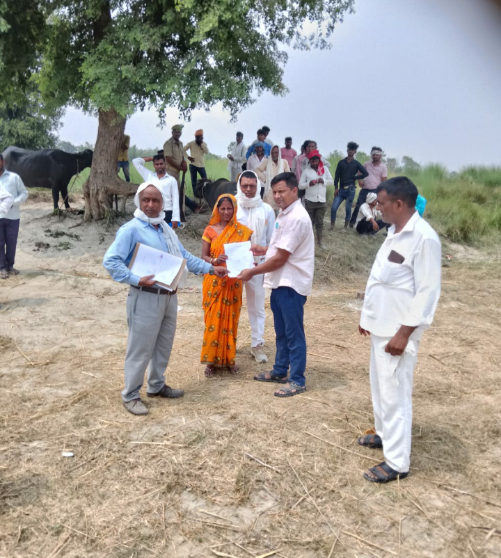 संत कबीर नगर 10 जून, 2025 जिलाधिकारी आलोक कुमार के निर्देश के क्रम में तहसीलदार धनघटा योगेंद्र कुमार पांडेय द्वारा विगत वर्षों में घाघरा नदी की कटान से प्रभावित घरों से सम्बंधित ग्राम-गायघाट, तप्पा-सेमरी के परिवारों को ग्राम-जिगिना, तप्पा-सेमरी में आवास निर्माण हेतु भूमि आवंटित कर आज दिनांक 10.06.25 को मौके पर आवंटियों को कब्जा दखल कराया गया।
