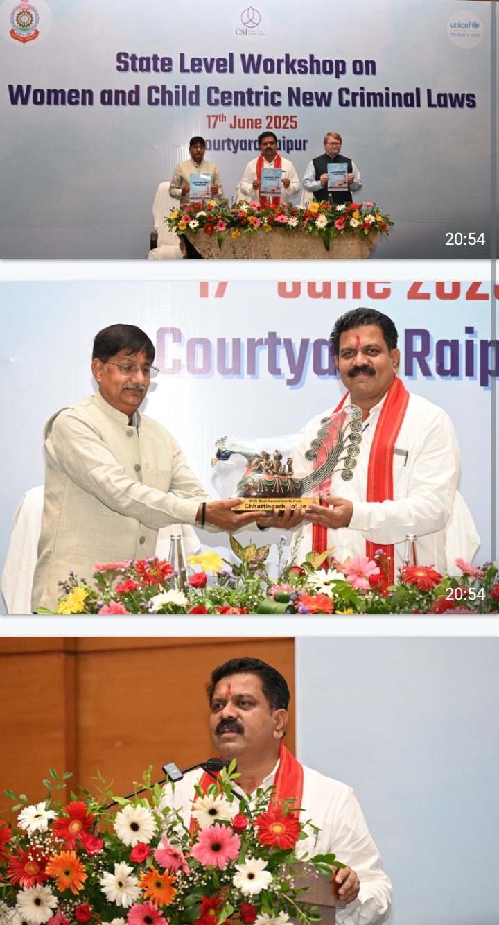 रायपुर – दिनांक 17 जून, 2025 को पुलिस महानिदेशक श्री अरूण देव गौतम के मार्गदर्शन में ‘‘महिला एवं बाल केन्द्रित नवीन कानून’’ विषय पर कार्यशाला का आयोजन माननीय उप मुख्यमंत्री एवं गृहमंत्री श्री विजय शर्मा के मुख्य आतिथ्य में छत्तीसगढ़ पुलिस एवं यूनिसेफ के संयुक्त तत्वाधान में किया गया। सर्वप्रथम कार्यशाला के रूपरेखा पर प्रकाश डालते हुए अपराध अनुसंधान एवं नारकोटिक्स के पुलिस महानिरीक्षक श्री अजय यादव ने महिला एवं बाल सुरक्षा की दिशा में छत्तीसगढ़ पुलिस एवं राज्य शासन द्वारा किये जा रहे प्रयासों का उल्लेख करते हुए नवीन महिला थाना, महिला हेल्पडेस्क, परिवार परामर्श केन्द्र, एन्टी ह्यूमेन ट्रेफिकिंग यूनिट द्वारा किये जा रहे कार्यों को विस्तारपूर्वक बताया। तत्पश्चात पुलिस महानिदेशक श्री अरूण देव गौतम ने अपने उद्बोधन में कहा कि नवीन कानून में महिला एवं बाल अपराधों को प्राथमिकता दी गई है और इसके लिए एक पृथक से अध्याय बनाया गया है और बहुत ही शुरूआती धाराओं में इस अपराध को रखा गया, जो यह बताता है कि महिला को न्याय दिलाया जाना कितना महत्वपूर्ण है। नवीन कानूनों को प्रभावी तरीके से लागू करने की दिशा में लगातार कार्य किया जा रहा है, किन्तु असली चुनौती न्यू क्रिमिनल लॉ को उसके रियल स्प्रिट में पूरी तरह से लागू किया जाना है। साक्ष्य को घटनास्थल से कैसे हम कोर्ट तक पहुंचा पायें इस हेतु हमारे विवेचाधिकारी को पूरे प्रक्रिया की समझ होनी चाहिए, ताकि बचाव पक्ष को कोई अवसर न मिल सके और इस दिशा में यह कार्यशाला बहुत उपयोगी होगी। यूनिसेफ, छत्तीसगढ़ प्रुमख श्री विलियम ने कहा कि यूनिसेफ एवं छत्तीसगढ़ पुलिस बाल संरक्षण की दिशा में काफी लंबे समय कार्य कर रहे हैं। उन्होने कहा कि समाज में चाईल्ड प्रोटेक्टिव वातवरण निर्मित करने की दिशा में चाईल्ड फ्रेण्डली प्रोसिजर को अपनाये जाने की आवश्यकता है। साथ ही छत्तीसगढ़ पुलिस द्वारा सौ से अधिक थानों में विकसित चाईल्ड फ्रेण्डली थानों का भी जिक्र अपने उद्बोधन में किया। कार्यक्रम के मुख्य अतिथि माननीय उप मुख्यमंत्री व गृह मंत्री श्री विजय शर्मा ने अपने संबोधन में कहा कि समाज की अपेक्षा पुलिस से होती है और उन अपेक्षाओं पर खरा उतरना आवश्यक है। यदि आज हम अपनी जिम्मेदारी नहीं निभायेंगे तो स्थिति और बिगड़ जायेगी। कानून ही एक मात्र रास्ता है जिससे परेशानी को समय से पहले रोका जा सकता है। प्रतिभागियों से आह्वान करते हुए उन्होंने कहा कि आप अपने जिले में ऐसी कार्यवाही करें जिससे पूरी दुनिया सीख ले। सुरक्षा है तो जीवन है, उन्नति है, खुशियां है, संसाधन है। पूरे समाज में पुलिस ही एक मात्र ऐसी संस्था है, जिसके अधिकारी व कर्मचारी समाज सेवा में अपना जीवन का न्यौछ