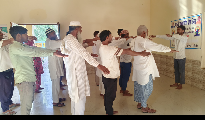 बरेली। भोजीपुरा थाना क्षेत्र के ग्राम घुर समसपुर में आज अंतर्राष्ट्रीय योग दिवस मनाया गया। बता दें। 21जून2025:11वें अंतर्राष्ट्रीय योग दिवस के अवसर पर गांव के सचिवालय में एक भव्य योग कार्यक्रम का आयोजन किया गया। जिसमें ग्राम प्रधान साबिर अंसारी ने योग दिवस के सफल आयोजन के लिए सभी प्रतिभागियों और आयोजकों का आभार जताया। और प्रतिभागियों को प्राणायाम, सूर्य नमस्कार, ताड़ासन, भुजंगासन और ध्यान जैसी योग क्रियाओं का अभ्यास कराया। कार्यक्रम के दौरान गांव के ही ग्राम प्रधान साबिर अंसारी, ग्राम पंचायत सहायक अशरफ अंसारी, समेत कई सम्मानित लोग मौजूद रहे।