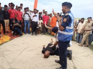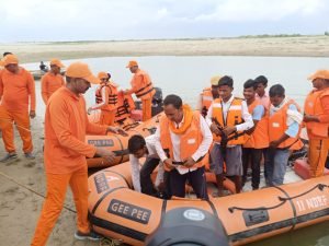 बहराइच 26 जून। बाढ़ प्रभावित क्षेत्रों में बचाव व राहत कार्यों को प्रभावी ढंग से संचालित किये जाने के उद्देश्य से तहसील महसी के ग्राम बौंडी स्थित सिलौटा के रामघाट पर मुख्य राजस्व अधिकारी देवेन्द्र पाल सिंह, तहसील कैसरगंज के ग्राम तप्पेसिपाह स्थित घाघराघाट पर अति. मजिस्ट्रेट प्रथम राम दयाल तथा तहसील नानपारा के ग्राम बौण्डी में उप जिलाधिकारी मिहींपुरवा (मोतीपुर) प्रकाश सिंह के नेतृत्व में मेगा मॉक ड़िªल का आयोजन कर जिला प्रशासन द्वारा अपनी तैयारियों को परखा गया।