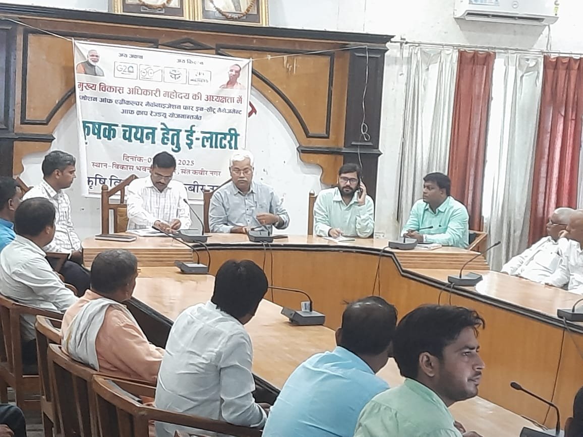 संत कबीर नगर 07 अगस्त, 2025 जिलाधिकारी आलोक कुमार के निर्देश के क्रम में मुख्य विकास अधिकारी जयकेश त्रिपाठी की अध्यक्षता में आज कृषि विभाग द्वारा संचालित विभिन्न योजनाओं में दिनांक 27 जून से 12 जुलाई 2025 तक ऑनलाइन टोकन के जमा करने के उपरांत कृषकों द्वारा यंत्रों की बुकिंग में किसानों का चयन करने हेतु ई-लॉटरी निकाली गई।