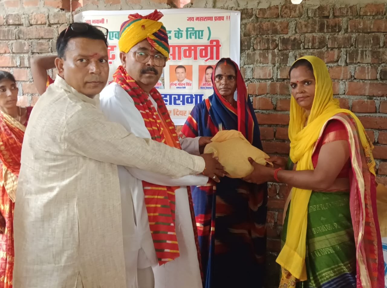 *बलिया*- क्षत्रिय महासभा के तत्वधान में शिवपुर दियर व्यासी नंबरी डेरा निवासी-समाज सेवी हरेंद्र मोहन सिंह एवं वार्ड०न०-55-के जिला पंचायत सदस्य प्रत्याशी एवं भाजपा नेत्री श्रीमती सरिता सिंह ने बाढ़ पीड़ितों में खाद्य सामग्री एवं दवा वितरण किया जिसमे मुख्य अतिथि के रूप में संतकबीर नगर से आये क्षत्रिय महासभा के राष्ट्रीय अध्यक्ष श्री नरेंद्र सिंह जी को अंगवस्त्रम एवं श्री राम जी की स्मृति चिन्ह देकर सम्मानित किया साथ में संगठन के अन्य लोग भी उपस्थित रहे और राष्ट्रीय अध्यक्ष ने पीड़ितों में सामग्री वितरण की शुरुआत की और बाढ़ पीड़ित के घर जाकर उनके परिवार से मिलकर उनका हाल-चाल लिए और कहा कि जरूरत पड़ने पर आगे भी पीड़ित परिवार के साथ खड़ा रहूंगा इसी क्रम में सरिता सिंह ने कहा कि विगत पिछले कई सालों से क्षेत्र की जनता की सेवा करते चली आई हूं और आगे भी देव तुल्य जनता का आशीर्वाद रहा तो सेवा करूंगी और समाज सेवी हरेंद्र मोहन सिंह ने सभी का आभार प्रकट किया