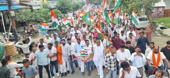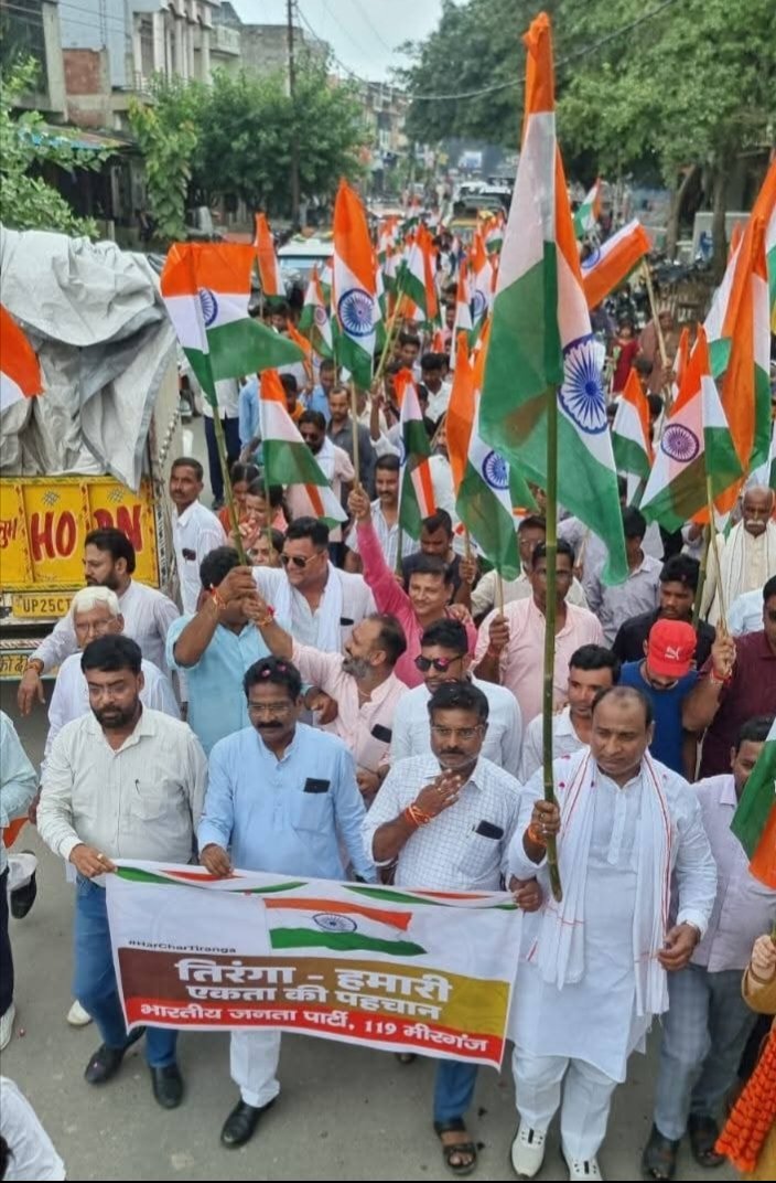 बरेल/मीरगंज, आज मंगलवार को भारतीय जनता पार्टी द्वारा नगर में निकाली गई तिरंगा यात्रा
