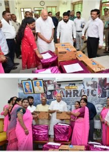 प्रभारी मंत्री श्री शाही व जनप्रतिनिधियों द्वारा आंगनबाड़ी केन्द्र ढपालीपुरवा की आंगनबाड़ी कार्यकत्री सरिता चैधरी व किरन पाठक, बशीरगंज दक्षिणी की शबा कौसर, बशीरगंज उत्तरी की अनुपम गुप्ता, हमज़ापुरा की लता त्रिपाठी व रेखारानी, सत्तीकुआं की नेहा सोनी, रीना कुमारी व शबाना तथा घसियारीपुरा की कल्पना को बर्तन का वितरण किया गया। श्री शाही ने कहा कि बर्तन का वितरण होने से आंगनबाड़ी केन्द्रों पर हाट कुक्ड योजना के संचालन में आंागनबाड़ी कार्यकत्रियों को सुविधा होगी।