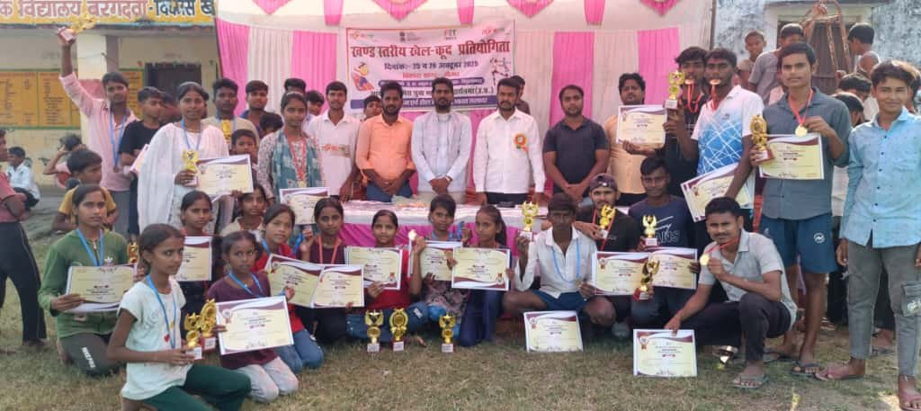 युवा कार्यक्रम एवं खेल मंत्रालय भारत सरकार की स्वायत्त इकाई मेरा युवा भारत के तत्वाधान मे एवं जिला युवा अधिकारी अनुराग यादव के निर्देशानुसार दो दिवसीय खण्ड स्तरीय खेलकूद प्रतियोगिता का आयोजन विकास खण्ड नौगढ़ के ग्राम पंचायत बरगदवा के कंपोजिट जूनियर हाइस्कूल के ग्राउंड में किया गया। जिसमे बतौर मुख्य अतिथि सुहेल अहमद जिला पंचायत सदस्य प्रत्याशी ने अपने उद्बोधन में कहा कि खेलों का महत्व शारीरिक, मानसिक और सामाजिक विकास के लिए है। यह हृदय स्वास्थ्य और मांसपेशियों को मजबूत करने, तनाव कम करने, आत्मविश्वास बढ़ाने, अनुशासन सिखाने और टीम वर्क जैसे महत्वपूर्ण जीवन कौशल विकसित करने में मदद करता है।विशिष्ट अतिथि के रूप में मौजूद विराट सेवा संस्था के अध्यक्ष मनोज कुमार यादव और जानकी युवा क्लब के अध्यक्ष विंदेश्वरी यादव उपस्थित रहे। वालीवाल में आशीष की टीम विजेता व लक्ष्मण की टीम उपविजेता रही इसी प्रकार खो-खो मे मुस्कान की टीम विजेता व कामिनी की टीम उपविजेता रही और बैडमिंटन मे दिव्या प्रथम, सुनंदा द्वितीय व दिव्या चौरसिया ने तृतीय स्थान प्राप्त किया। 100 मीटर दौड़ बालिका वर्ग में प्रथम स्थान मुस्कान द्वितीय स्थान सुलोचना और तृतीय स्थान कामिनी ने प्राप्त किया। 400 मीटर दौड़ बालक वर्ग में प्रथम स्थान वाजिद अली द्वितीय स्थान गौरव विश्वकर्मा और शिवा ने तृतीय स्थान प्राप्त किया। लंबी कूद में प्रथम स्थान सगुण द्वितीय स्थान पर सगुण और वाजिद अली ने तृतीय स्थान हासिल किया।बतौर रेफरी समित कुमार उपस्थित रहे। कार्यक्रम का संचालन पूर्व राष्ट्रीय युवा स्वयं सेवक सनूप कुमार ने किया। कार्यक्रम के दौरान असलम,अजय,प्रिंस,प्रीतम,अमरदीप,आशीष यादव,राजदीप,सहित अन्य युवा उपस्थित रहे।