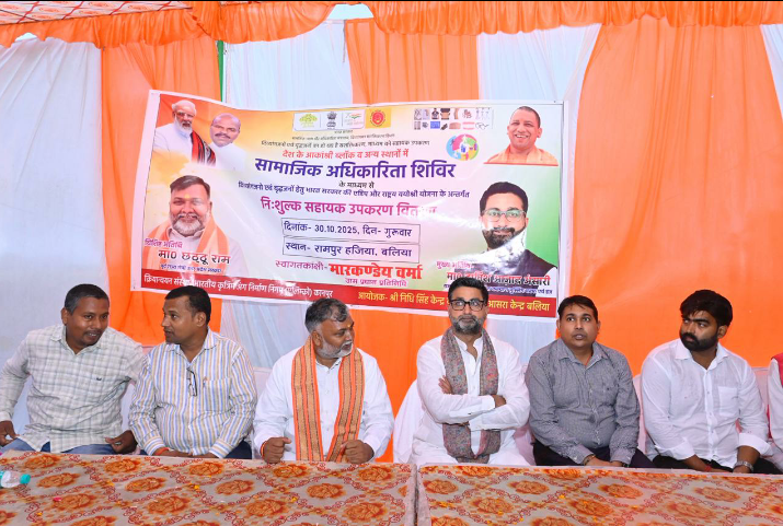बलिया। भारत सरकार की एडीप एवं राष्ट्रीय वयोश्री योजना के अंतर्गत गुरुवार को रामपुर हाजिया, बलिया में एक विशाल सामाजिक अधिकारिता शिविर का आयोजन किया गया। इस अवसर पर मुख्य अतिथि माननीय मंत्री श्री दानिश आज़ाद अंसारी एवं श्री छठ्ठू राम ने संयुक्त रूप से दिव्यांगजनों और वृद्धजनों को निःशुल्क कृत्रिम एवं सहायक उपकरणों का वितरण किया। इस कार्यक्रम के दौरान जिले के 1400 पूर्व चिन्हित लाभार्थियों को कुल 7114 उपकरण प्रदान किए गए, जिनकी कुल लागत लगभग ₹1 करोड़ 20 लाख 83 हजार रुपये रही। यह वितरण जिला प्रशासन और सामाजिक न्याय एवं अधिकारिता मंत्रालय, भारत सरकार के संयुक्त तत्वावधान में किया गया। योजना का उद्देश्य वरिष्ठ नागरिकों और दिव्यांगजनों को आत्मनिर्भर बनाना, उन्हें दैनिक जीवन में सुविधा प्रदान करना और उनके जीवन की गुणवत्ता में सुधार लाना है।