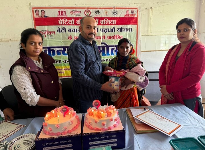 *बलिया*-सामुदायिक स्वास्थ्य केंद्र (CHC)रेवती में दिनांक-27- नवम्बर- 2025-दिन गुरुवार को आयोजित कन्या जन्मोत्सव कार्यक्रम का आयोजन महिला कल्याण विभाग,उत्तर प्रदेश के मिशन शक्ति फेज-5.0- के अंतर्गत एवं महिला कल्याण विभाग, उत्तर-प्रदेश द्वारा संचालित मिशन शक्ति फेज-5.0-के बेटी बचाओ बेटी पढ़ाओ योजना अंतर्गत डॉ०अमरेन्द्र कुमार पौत्स्यान जिला प्रोबेशन अधिकारी के निर्देश के क्रम में -CHC-रेवती में कन्या जन्मोत्सव कार्यक्रम उत्साहपूर्वक आयोजित किया गया कार्यक्रम का उद्देश्य जिले में बालिकाओं के जन्म को उत्सव के रूप में मनाना,उनके अधिकारों के प्रति समाज को जागरूक करना तथा“बेटी बचाओ बेटी पढ़ाओ” संदेश को प्रत्येक परिवार तक पहुँचाना रहा कार्यक्रम में डॉ०प्रवीण अधीक्षक जन्मी नवजात कन्याओं का पारंपरिक तरीके से बेबी किट,सोन पापड़ी और सामन पत्र वितरण कर स्वागत किया गया माताओं को पोषण, स्वास्थ्य, प्रसवोत्तर देखभाल तथा बालिकाओं की शिक्षा व सुरक्षा से संबंधित जानकारी प्रदान की गई इस कार्यक्रम में अंजली सिंह जिला मिशन समन्वयक और निकिता सिंह जेंडर स्पेशलिस्ट (Hew) द्वारा महिला कल्याण विभाग द्वारा संचालित योजनाओं का प्रचार प्रसार किया गया और पात्र लाभार्थियों को आवेदन में सहयोग किया गया इस कार्यक्रम में उपस्थित कुमकुम सिंह सुपरवाइजर(CHL)आशा बहु, ग्रामीण महिलाएं इसलिए प्रत्येक बेटी के जन्म को सम्मान, उत्साह और गर्व के साथ मनाया जाना चाहिए कार्यक्रम में स्वास्थ्य कर्मियों, आशा कार्यकर्ताओं, आंगन बाड़ी कार्यकत्रियों, जन प्रतिनिधियों तथा स्थानीय महिलाओं ने सक्रिय रूप से भाग लिया और समाज को बालिकाओं के अधिकारों के प्रति संवेदनशील बनाने का संकल्प लिया