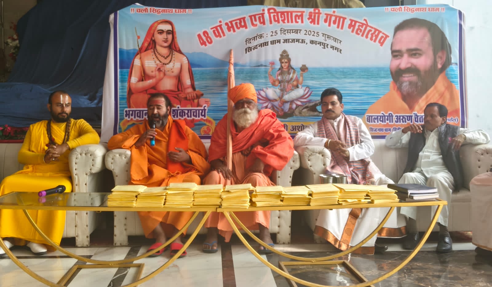 *विशाल व भव्य गंगा महोत्सव समारोह* श्री मां गंगा सेवा समिति व अखिल भारतीय मठ मंदिर समन्वय समिति के तत्वावधान में सिद्ध नाथ धाम, द्वितीय काशी जाजमऊ में 25 दिसंबर को विशाल गंगा महोत्सव व विशाल भंडारे का आयोजन किया जा रहा है। यह बात सिद्ध नाथ मंदिर के महामंडलेश्वर स्वामी अरुण चैतन्य पुरी महराज ने कृष्णा वाटिका लान में पत्रकारों से बातचीत में कही, उन्होंने यह भी कहा कि 49 वा पुण्य स्मृति पावन पर्व में मां गंगा का महाभिषेक, सहस्त्रार्चन, मां गंगा को चुनरी अपर्ण की जायेगी। शाम को देश के विभिन्न शहरों से आये कलाकारो भजन संध्या का भी आयोजन किया गया है। इसके बाद मंगल महाआरती व विशाल भंडारे का भी आयोजन किया गया है। जिसमें कानपुर नगर से विभिन्न सामाजिक संगठन, राजनीतिक, सामाजिक लोग व व्यापारी लोग मौजूद रहेंगे। इसमें कानपुर के साथ साथ फतेहपुर, कन्नौज, उन्नाव, कानपुर देहात, इटावा,औरैया आदि शहरों से हजारों लोग मां गंगा की आरती कर प्रसाद ग्रहण करते हैं। इसमें प्रमुख रूप से अशोक भाटिया, राजीव मिश्रा,अशोक त्रिवेदी, संजय त्रिवेदी , शेष नारायण त्रिवेदी पप्पू भाई, राजेश शुक्ला, आदित्य पोद्दार आदि लोग मौजूद रहे।