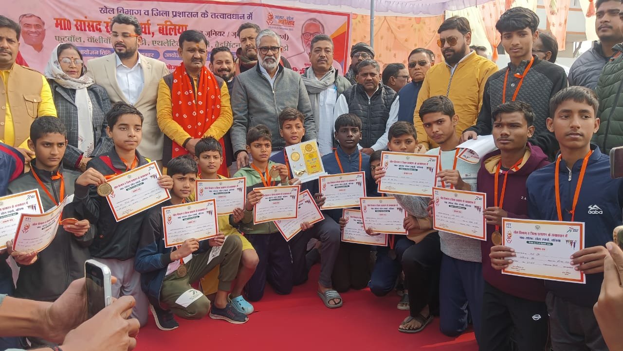 मुख्य अतिथि-नीरज शेखर ने अपने संबोधन में सभी खिलाड़ियों को जिला,राज्य,राष्ट्रीय एवं अंतरराष्ट्रीय स्तर की खेल प्रतियोगिताओं में प्रतिभाग करने के लिए शुभकामनाएं दीं और खेलों को अनुशासन, स्वास्थ्य एवं उज्ज्वल भविष्य का माध्यम बताया। इस खेल प्रतियोगिता में जिले की पांच विधानसभाओं—बलिया नगर, फेफना, बैरिया, मुहम्मदाबाद एवं जहूराबाद—के सब जूनियर, जूनियर एवं सीनियर वर्ग के बालक एवं बालिकाओं ने भाग लिया। वॉलीबॉल, फुटबॉल, कबड्डी, एथलेटिक्स, कुश्ती, भारोत्तोलन एवं बैडमिंटन जैसी खेल विधाओं में खिलाड़ियों ने शानदार प्रदर्शन किया। वॉलीबॉल सब जूनियर बालक वर्ग में बलिया नगर विजेता एवं मुहम्मदाबाद उपविजेता रहा। जूनियर वर्ग में मुहम्मदाबाद विजेता तथा बलिया सदर उपविजेता रहा। फुटबॉल सब जूनियर बालक वर्ग में बलिया नगर विजेता एवं फेफना उपविजेता रहा, जबकि जूनियर वर्ग में मुहम्मदाबाद विजेता और बलिया सदर उपविजेता रहा। सीनियर वर्ग में बलिया नगर ने प्रथम तथा फेफना ने द्वितीय स्थान प्राप्त किया। कबड्डी में विभिन्न वर्गों में बलिया नगर, मुहम्मदाबाद, बैरिया एवं जहूराबाद की टीमों ने उत्कृष्ट प्रदर्शन किया। बैडमिंटन में सब जूनियर, जूनियर एवं सीनियर वर्गों में बालक एवं बालिकाओं ने पदक जीतकर जिले का नाम रोशन किया। भारोत्तोलन एवं कुश्तीप्रतियोगिताओं में भी खिलाड़ियों ने अपने-अपने भार वर्ग में शानदार प्रदर्शन कर प्रथम, द्वितीय एवं तृतीय स्थान प्राप्त किए। प्रतियोगिता के दौरान निर्णायक की भूमिका में श्री अरविंद सिंह, नीरज राय, खुशीद अहमद, अमल कुअर, पंकज सिंह, अजीत सिंह, चंद्रकांत राय, मैन यादव, अजय राज सिंह, धर्मेंद्र पांडेय, रोहित भारद्वाज सहित अन्य निर्णायक उपस्थित रहे। कार्यक्रम के अंत में जिला क्रीड़ाधिकारी श्री जवाहर लाल यादव ने सभी अतिथियों, खिलाड़ियों, निर्णायकों एवं आयोजन से जुड़े अधिकारियों का आभार व्यक्त किया। इस अवसर पर मुख्य विकास अधिकारी श्री ओजस्वी राज्य, भाजपा जिला अध्यक्ष श्री संजय मिश्रा, उत्तर प्रदेश महिला आयोग की सदस्य श्रीमती सुनीता श्रीवास्तव, सीटी मजिस्ट्रेट आशाराम वर्मा सहित अनेक जनप्रतिनिधि,प्रशासनिक अधिकारी, खेल संघों के पदाधिकारी एवं बड़ी संख्या में खेल प्रेमी उपस्थित रहे।