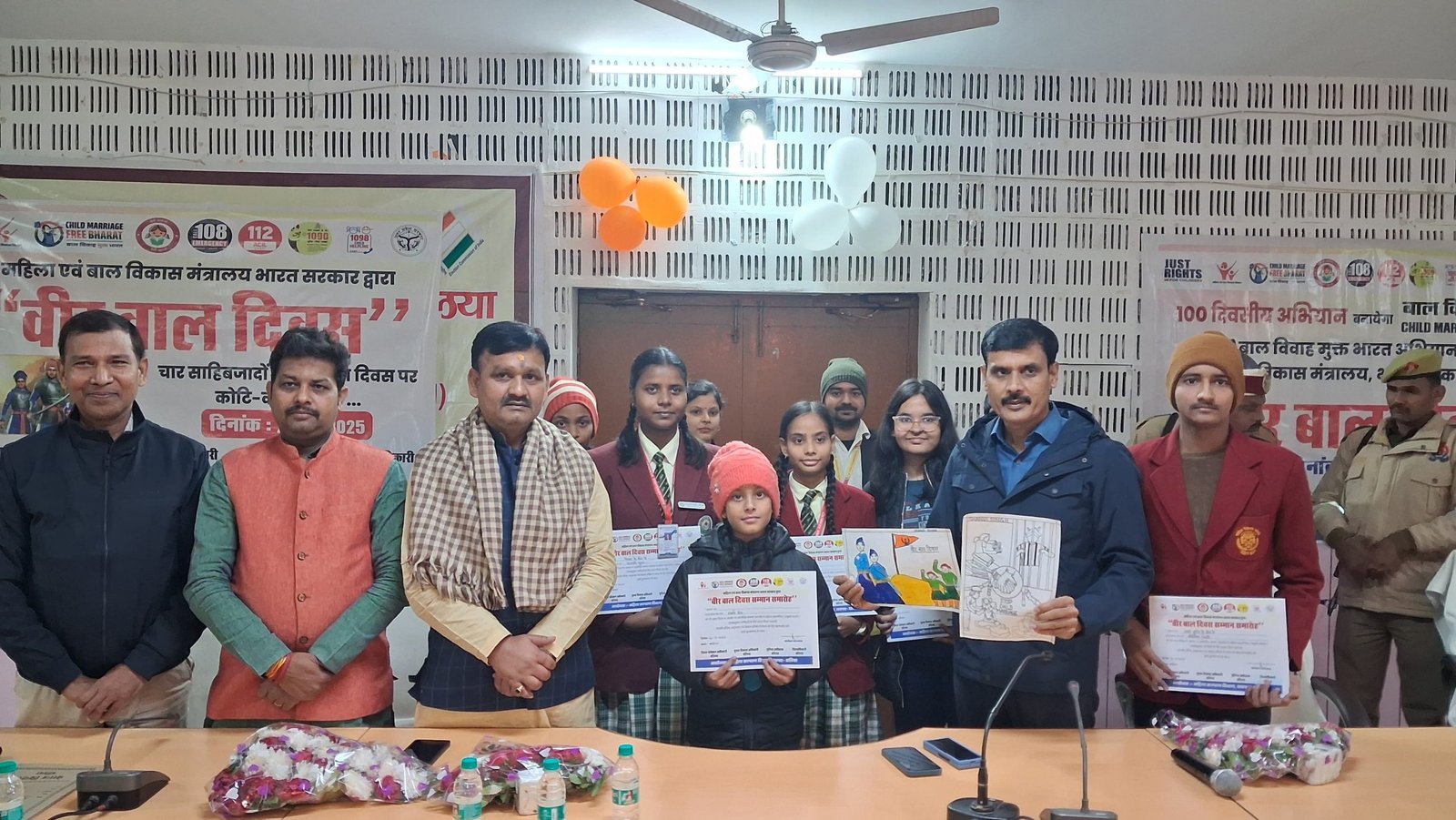 *बलिया*-वीर बाल दिवस के अवसर पर माननीय प्रधानमंत्री श्री नरेंद्र मोदी जी के मार्गदर्शन में कलेक्ट्रेट सभागार में एक विशेष कार्यक्रम का आयोजन किया गया। कार्यक्रम की अध्यक्षता जिलाधिकारी मंगला प्रसाद सिंह ने की, जबकि मुख्य अतिथि के रूप में जिलाध्यक्ष श्री संजय मिश्रा उपस्थित रहे। साथ ही कार्यक्रम के दौरान बच्चों एवं शिक्षकों के साथ वीर बाल दिवस का लाइव प्रसारण देखा गया। इसके उपरांत शिक्षा, कला एवं सामाजिक कार्य के क्षेत्र में उत्कृष्ट योगदान देने वाली बालिकाओं एवं बालकों को विभिन्न श्रेणियों में सम्मानित किया गया। सम्मान पाकर बच्चों के चेहरे पर उत्साह और आत्मविश्वास झलकता नजर आया कार्यक्रम का संचालन जिला प्रोबेशन अधिकारी (डीपीओ) डॉ. अमरेन्द्र कुमार पौत्स्यायन द्वारा किया गया, जबकि समन्वय की जिम्मेदारी जिला समन्वयक, महिला कल्याण विभाग की अंजलि सिंह ने निभाई। इस अवसर पर राधा कृष्णा स्कूल, सनबीम स्कूल, बेसिक शिक्षा विभाग के अंतर्गत प्राथमिक विद्यालयों, नव भारती नारी विकास समिति तथा कृति सोशल वेलफेयर से जुड़े शिक्षकगण एवं सामाजिक कार्यकर्ता उपस्थित रहे। महिला कल्याण विभाग से जिला मिशन समन्वयक अंजलि सिंह, जेंडर स्पेशलिस्ट निकिता सिंह, वन स्टॉप सेंटर से हर्षवर्धन चौबे, मनोज प्रजापति सहित विभागीय कर्मचारी एवं अन्य गणमान्य व्यक्तियों की उपस्थिति रही। कार्यक्रम का मुख्य उद्देश्य बच्चों में देशभक्ति, साहस एवं सामाजिक उत्तरदायित्व की भावना को सुदृढ़ करना रहा। इस अवसर पर उपस्थित लोगों को बाल विवाह मुक्त भारत के लिए शपथ भी दिलाई गई। कार्यक्रम का समापन राष्ट्रगान के साथ किया गया