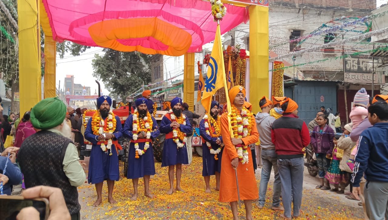 *बलिया*-नगर के गुरू दरबार से सिखों के दसवें गुरू महाराज गुरू गोविन्द साहेब प्रकाशोत्सव के पावन पर्व पर पंच प्यारे के नेतृत्व में गुरुवार की दोपहर विशाल शोभा यात्रा निकाली गयी जिसमें गुरू गुरूग्रन्थ साहब के साथ ही सैकड़ो की संख्या में झांकियां निकली,जो नगर के पूर्व निर्धारित मार्गो पर पुष्प वर्षा की बीच भ्रमण के पश्चात देर शाम गुरूदरबार पहुंची इस शोभा यात्रा मे सिख समुदाय की महिला और पुरूषगण भजन कीर्तन करते रहे।बीच बीच में जो बोले सो निहाल सत्य श्री अकाल के गगनभेदी नारे लगाये जाते रहे सुरक्षा को देखते हुए चप्पे चप्पे पर पुलिस के जवान तैनात रहे।शोभा यात्रा का मुख्य आकर्षण महिलाओ द्वारा सड़क पर झाड़ू से मार्ग की सफाई और पुष्प वर्षा और नन्हें बच्चे पारम्परिक परिधान मे बैण्ड बाजे की भक्तीमय ध्वनी रही जिसमे सरदार स्वर्ण सिंह तजेंद्र सिंह,रणजीत सिंह,बलबीर सिंह, सुरजीत सिंह, हरेंद्रपाल सिंह जगमीत सिंह हरजीत सिंह चावला, सुरेंद्र सिंह,अमृतपाल सिंह, इन्द्रपाल सिंह आदि शामिल रहे
