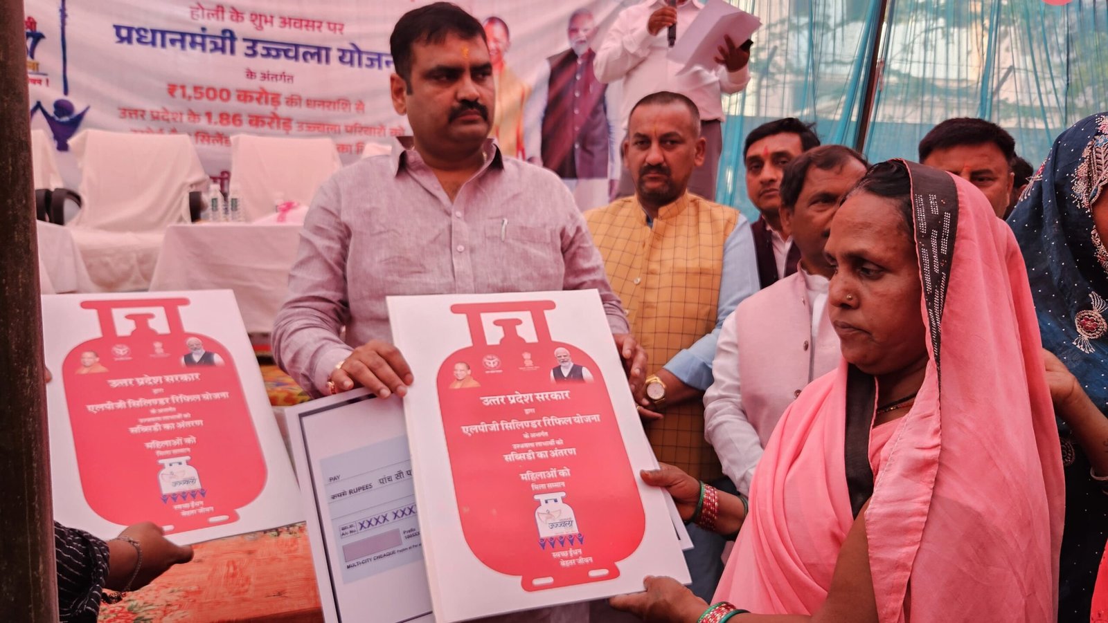 इस अवसर पर मा0 विधायक खलीलाबाद अंकुर राज तिवारी जी ने जनपदवासियों को होली पर्व की हार्दिक बधाई एवं शुभकामनाएं देते हुए कहा कि केन्द्र एवं प्रदेश सरकार विभिन्न कल्याणकारी योजनाओं से माताओं, बहनों की सुरक्षा, सम्मान, स्वालम्बन एवं समृद्धि के प्रति निरन्तर प्रयासरत है जिसका प्रभाव जमीनी स्तर पर समाज में साफ दिखाई पड़ रहा है, उन्होंने कहा कि मा0 प्रधानमंत्री जी की प्रेरणा एवं प्रदेश के मा0 मुख्यमंत्री पूज्य योगी आदित्यनाथ जी की गरीबों के कल्याण के प्रति पवित्र सोच का ही परिणाम है कि आज सभी माताओं, बहनों को उज्ज्वला योजना सहित विभिन्न कल्याणकारी योजनाओं का का लाभ मिला है। उन्होंने कहा कि माताओं एवं बहनों के स्वास्थ्य को देखते हुए यह बेहतर योजना संचालित की गई है। लकड़ी के ईंधन में खाना पकाने से उनके आंखों पर धुंआ लगने से प्रतिकूल प्रभाव पड़ता था। अब उन्हें गैस पर भोजन पकाने में आसानी होगी और धुंआ भी नही लगेगा। इसी उद्देश्य से सरकार द्वारा लाभार्थियों को निःशुल्क गैस रिफिल मुहैया करायी गई है। उन्होंने कहा कि केन्द्र एवं प्रदेश सरकार का एक मात्र लक्ष्य है कि समाज के अंतिम पायदान पर खड़े व्यक्ति को स्वास्थ्य, शिक्षा, राशन, ईधन आदि सभी आधारभूत आवश्यकताओं का लाभ दिला कर उन्हें विकास की मुख्य घारा जोड़ना है। उन्होंने जनपदवासियों के सुख एवं समृद्धि की कामना करते हुए मा0 प्रधानमंत्री जी एवं मा0 मुख्यमंत्री जी के प्रति हार्दिक आभार व धन्यवाद ज्ञापित किया तथा कहा कि केन्द्र एवं प्रदेश सरकार द्वारा बिना किसी भेदभाव के सभी जन कल्याणकारी योजनाओं का लाभ दिया जा रहा है।