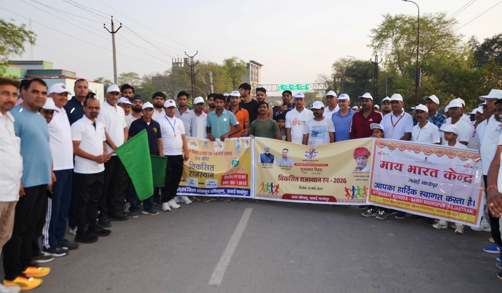 सवाई माधोपुर, 15 मार्च। मुख्यमंत्री भजनलाल शर्मा की पहल पर राजस्थान दिवस समारोह के अंतर्गत जिले में 14 से 19 मार्च 2026 तक विभिन्न कार्यक्रम आयोजित किए जा रहे हैं। इसी क्रम में रविवार को दशहरा मैदान से सर्किट हाउस तक ‘रन फॉर विकसित राजस्थान’ का उत्साहपूर्वक आयोजन किया गया। इस अवसर पर जिला कलक्टर काना राम ने दौड़ को हरी झंडी दिखाकर रवाना किया।