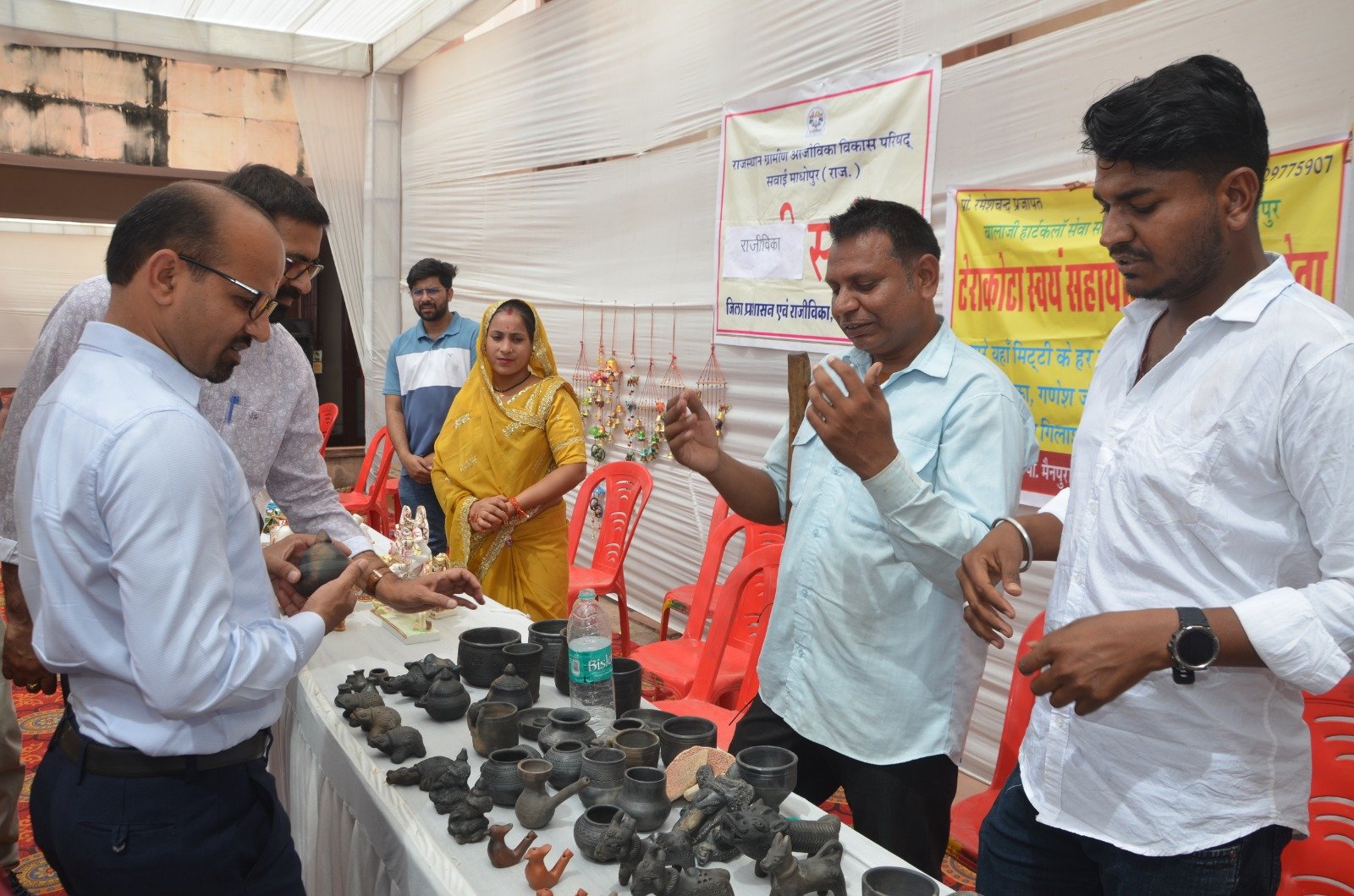 प्रदर्शनी में बांसटोड़रा क्षेत्र की मार्बल मूर्तियां, बस्ट, स्टैच्यू, लालटेन, फैंसी आइटम और मॉडर्न आर्ट विशेष आकर्षण का केंद्र बने हुए हैं। इसके अलावा हैंडलूम वस्त्र, सूती बेडशीट, धोती-तौलिये, ब्लैक पॉटरी उत्पाद, लकड़ी और मार्बल की मूर्तियां, लाख की चूड़ियां, चमड़े की मोजड़ियां, सन के खिलौने तथा ब्लॉक प्रिंटिंग आधारित उत्पाद भी प्रदर्शित किए गए हैं।