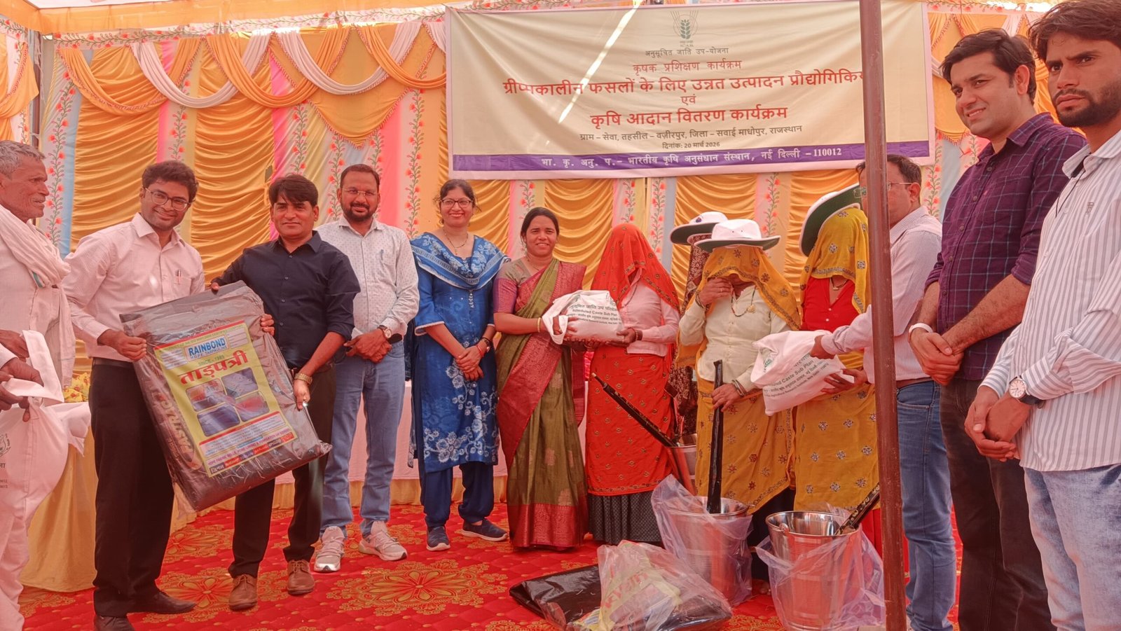 सवाई माधोपुर, 20 मार्च। अनुसूचित जाति उप-योजना (एससीएसपी) के अंतर्गत भाकृअनुप–भारतीय कृषि अनुसंधान संस्थान (आईएआरआई), नई दिल्ली द्वारा तहसील वजीरपुर के सेवा गांव में एक दिवसीय किसान प्रशिक्षण कार्यक्रम आयोजित किया गया। “ग्रीष्मकालीन फसलों हेतु उन्नत उत्पादन प्रौद्योगिकियां एवं कृषि आदान वितरण” विषय पर आयोजित इस कार्यक्रम में ग्राम पंचायत सेवा के लगभग 450 अनुसूचित जाति किसान लाभान्वित हुए।
