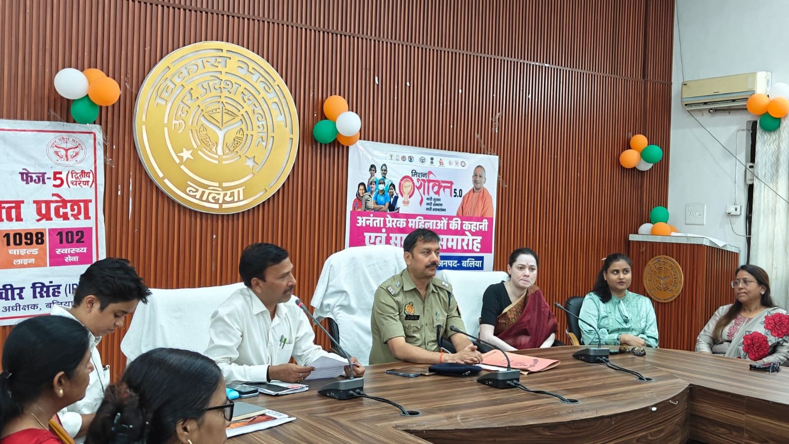 जिलाधिकारी महोदय के निर्देशनुसार व जिला प्रोबेशन अधिकारी के नेतृत्व में मिशन शक्ति फेज-5.0 (द्वितीय चरण) के अंतर्गत विकास भवन सभागार, बलिया में हब फॉर इंपावरमेंट ऑफ वूमेन द्वारा महिला सशक्तिकरण एवं सुरक्षा एवं अनंता सम्मान समारोह प्रेरक महिलाओं की कहानी एवं जागरूकता का आयोजन किया गया। कार्यक्रम में महिला कल्याण विभाग एवं पुलिस विभाग के अधिकारियों की उपस्थिति रही।कार्यक्रम की अध्यक्षता अपर पुलिस अधीक्षक श्री दिनेश कुमार शुक्ला जी द्वारा किया गया