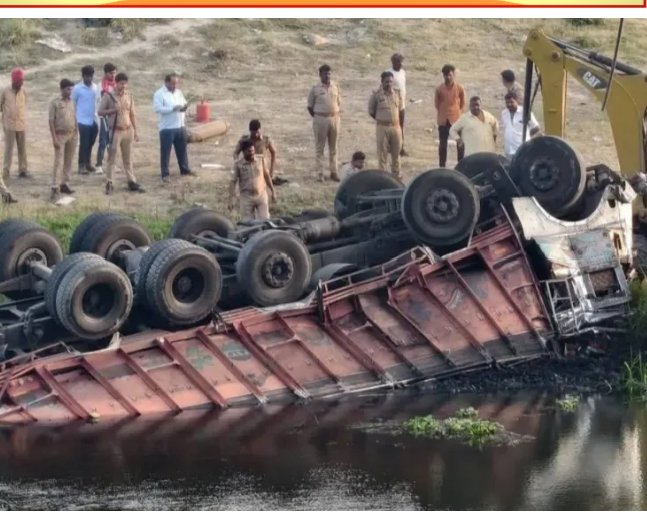 *पुल की रेलिंग तोड कर नदी में* *गिरा कोयला लदा ट्रक गैस* *कटर से काटकर निकाला* *गया युवक का शव*