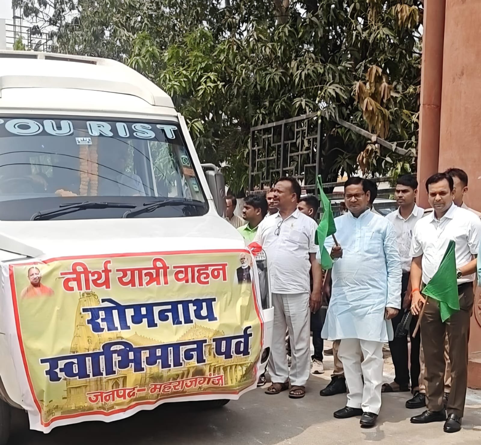 महराजगंज, 18 अप्रैल 2026, सोमनाथ स्वाभिमान पर्व में शामिल होने के लिए जिले से 10 तीर्थयात्रियों का दल आज गुजरात के लिए रवाना हुआ। तीर्थयात्रियों के दल को मा. विधायक सदर श्री जयमंगल कन्नौजिया व एडीएम डॉ. प्रशांत कुमार ने हरी झंडी दिखाकर रवाना किया।