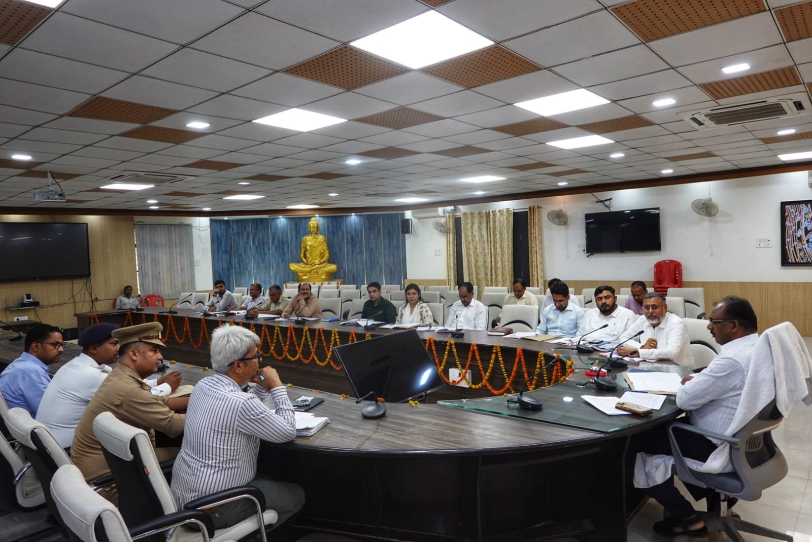 महराजगंज, 23 अप्रैल 2026, जिलाधिकारी श्री संतोष कुमार शर्मा की अध्यक्षता में कलेक्ट्रेट सभागार में जिला सड़क सुरक्षा समिति की समीक्षा बैठक आयोजित की गई। बैठक में जिले में हो रही सड़क दुर्घटनाओं की संख्या, उनके कारणों, चिन्हित ब्लैक स्पॉट्स की स्थिति तथा उन पर किए गए सुधारात्मक कार्यों की विस्तृत समीक्षा की गई। साथ ही विभिन्न संकेतकों की उपलब्धता एवं “गुड सेमैरिटन” से संबंधित व्यवस्थाओं पर भी चर्चा की गई।