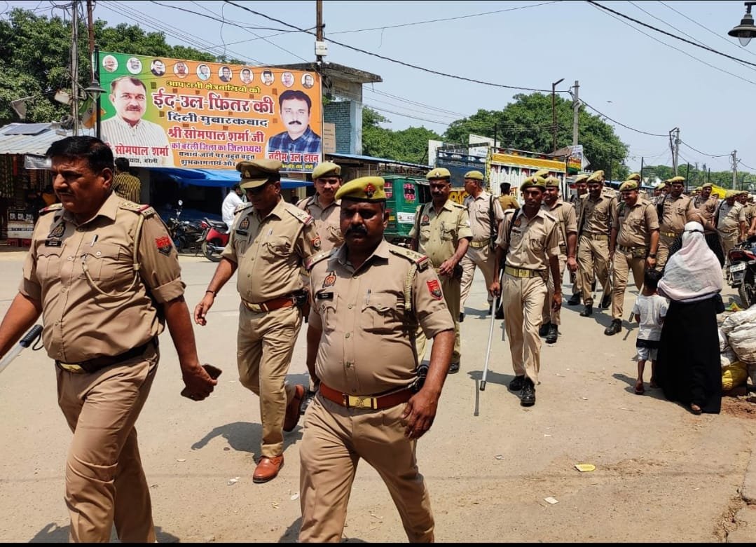 **भोजीपुरा पुलिस ने आम जन में शांति सुरक्षा व कानून का एहसास कराने हेतु धौंराटांडा में की पैदल गश्त*। धौंराटांडा /भोजीपुरा (बरेली)-थाना भोजीपुरा क्षेत्र के कस्बा धौंराटांडा में आज प्रभारी निरीक्षक प्रवीण कुमार सोलंकी के नेतृत्व में पुलिस पीएसी बल ने कस्बे के प्रमुख मार्गों पर आमजन में शांति व्यवस्था तथा सुरक्षा का अहसास कराने हेतु फ्लैग मार्च निकाला गया प्रशासन का स्पष्ट दिशा निर्देश है किसी भी प्रकार की क्षेत्र में खुराफात बर्दाश्त नहीं की जाएगी पुलिस अलर्ट है किसी भी स्थिति में निपटने के लिए पुलिस अपना काम करेगी आसामाजिक तत्व व अपराधियों पर कठोर कार्रवाही करेगी पैदल गस्त में स्थानीय पुलिस चौकी प्रभारी संजय कुमार समेत थाने का भी स्टाफ मौजूद रहा।